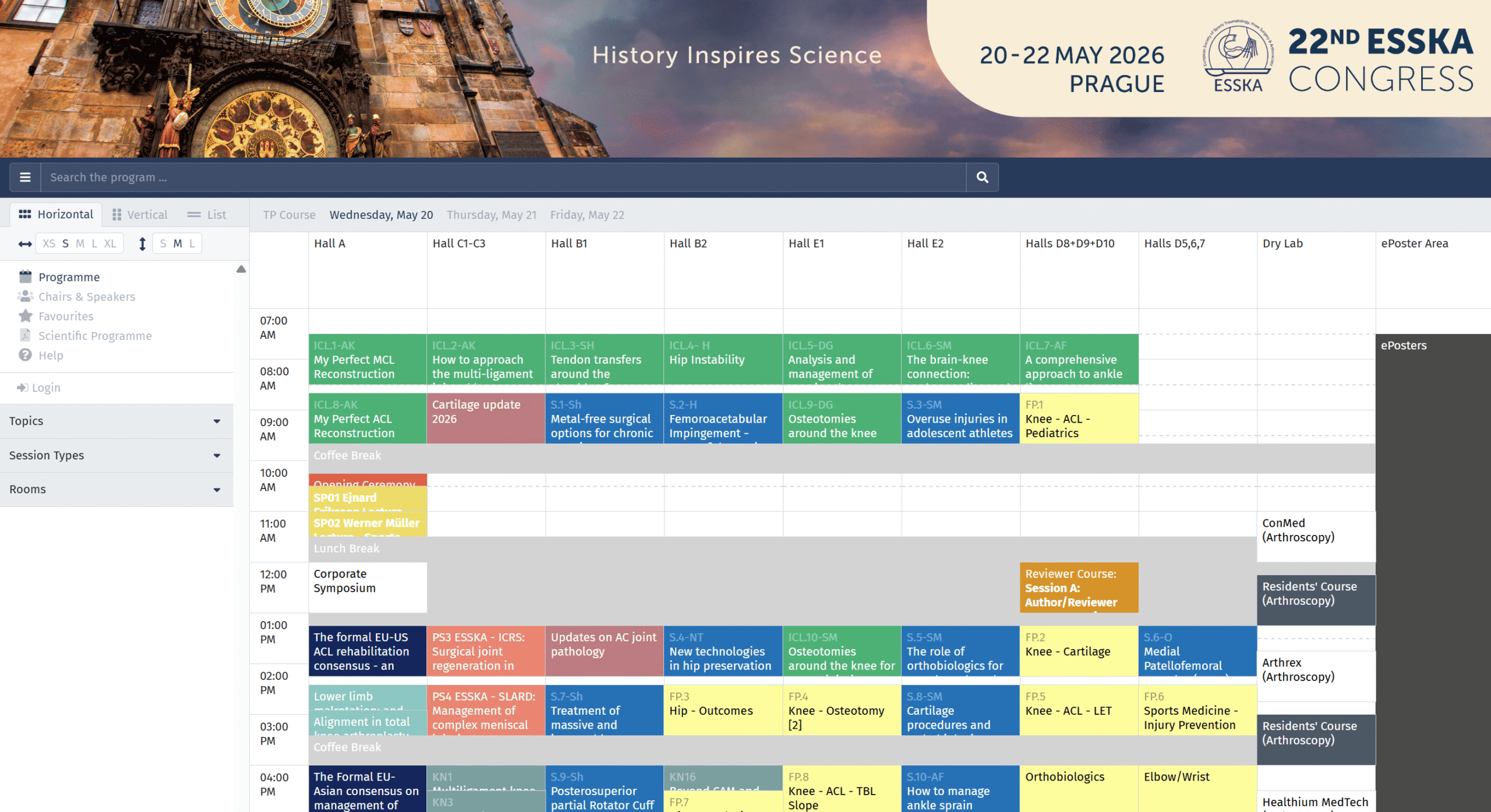 The 22nd ESSKA Congress runs for three days, from Wednesday 20 May to Friday 22 May 2026. The Scientific Programme provides a unique platform for presentations and discussions on advancing research at both clinical and basic science levels across all of ESSKA’s specialist areas.